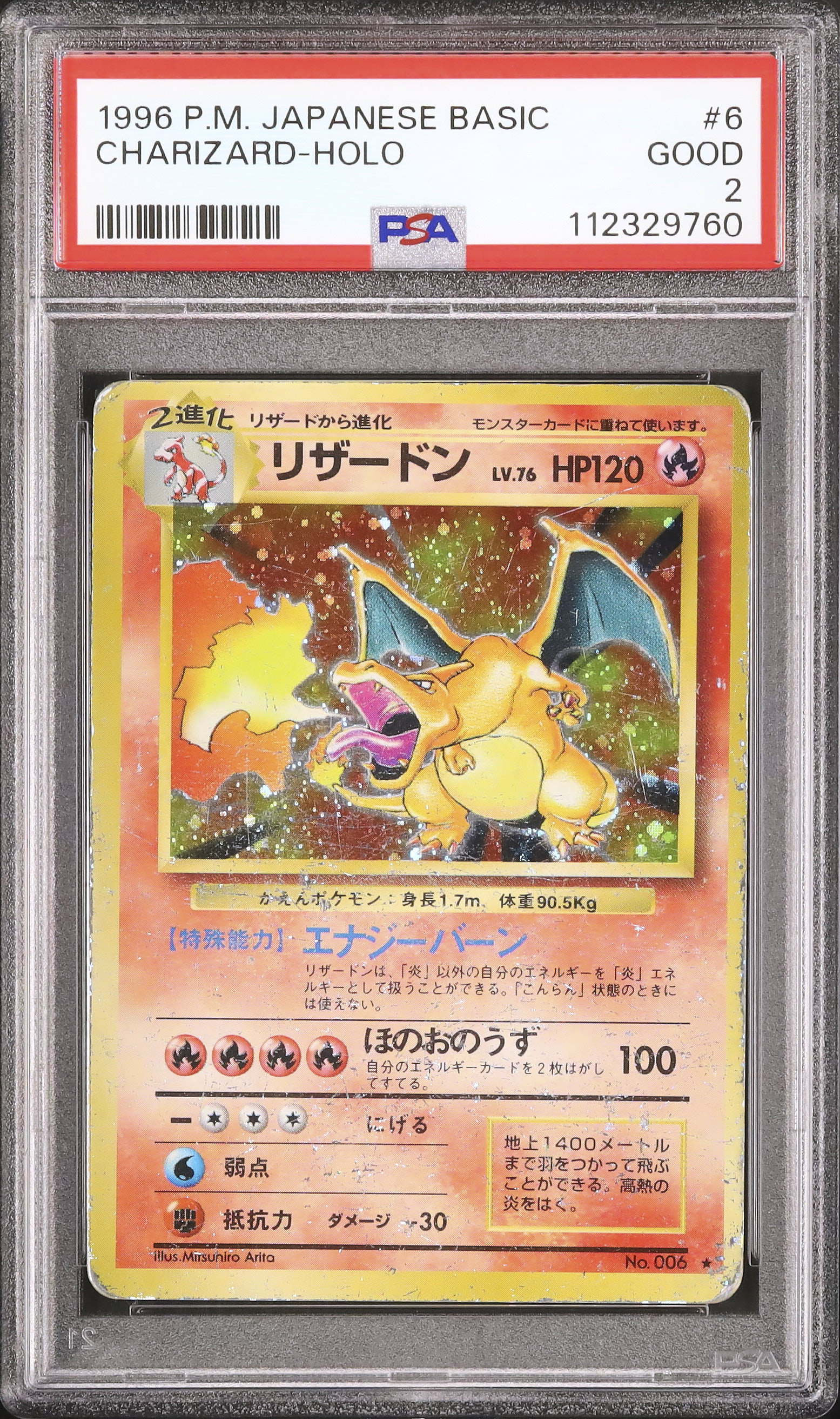 1996 ポケモン リザードン レア ホロ 第1弾 拡張パック #006 PSA 2