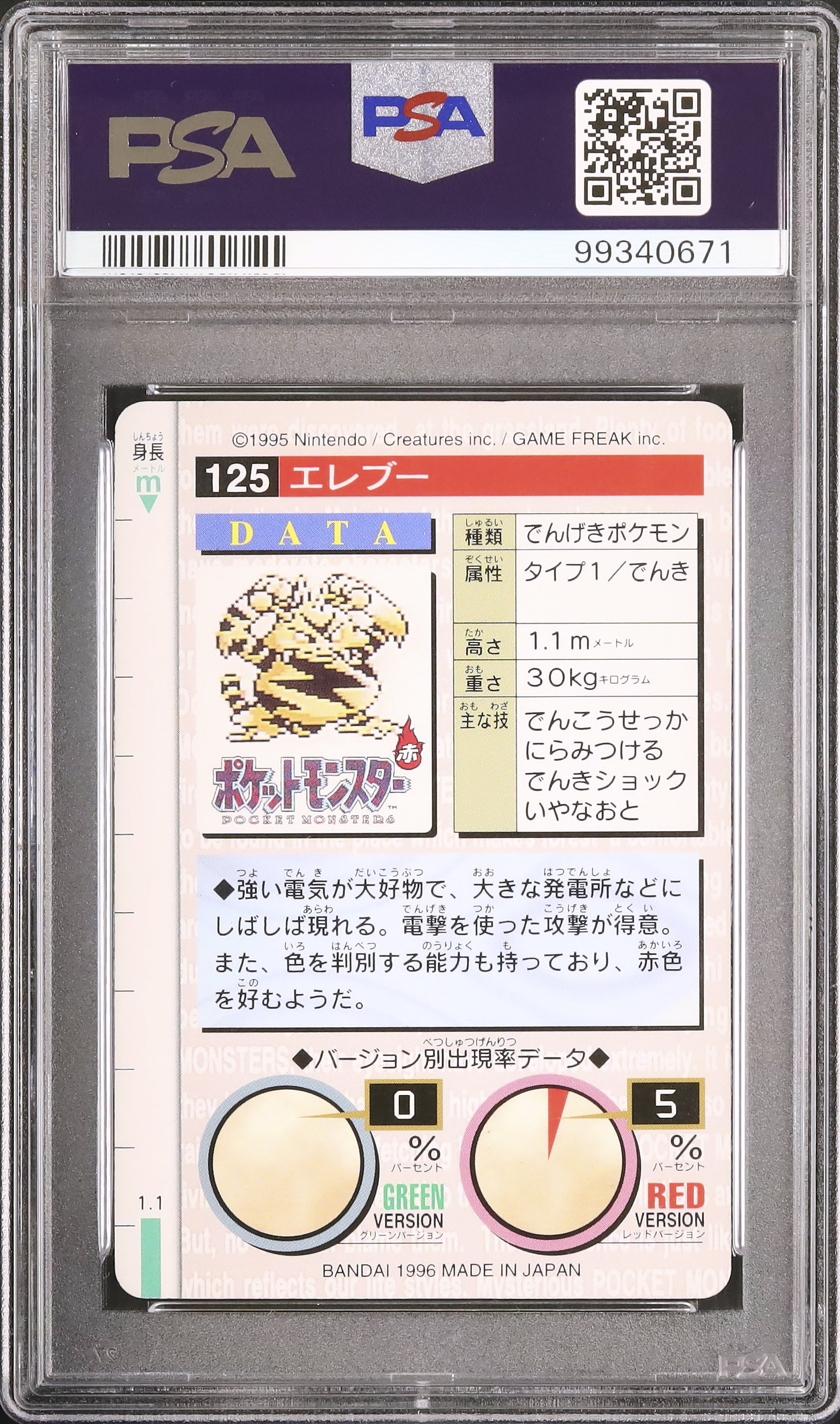 1996 ポケモン エレブー グリーン カードダス #125 PSA 6