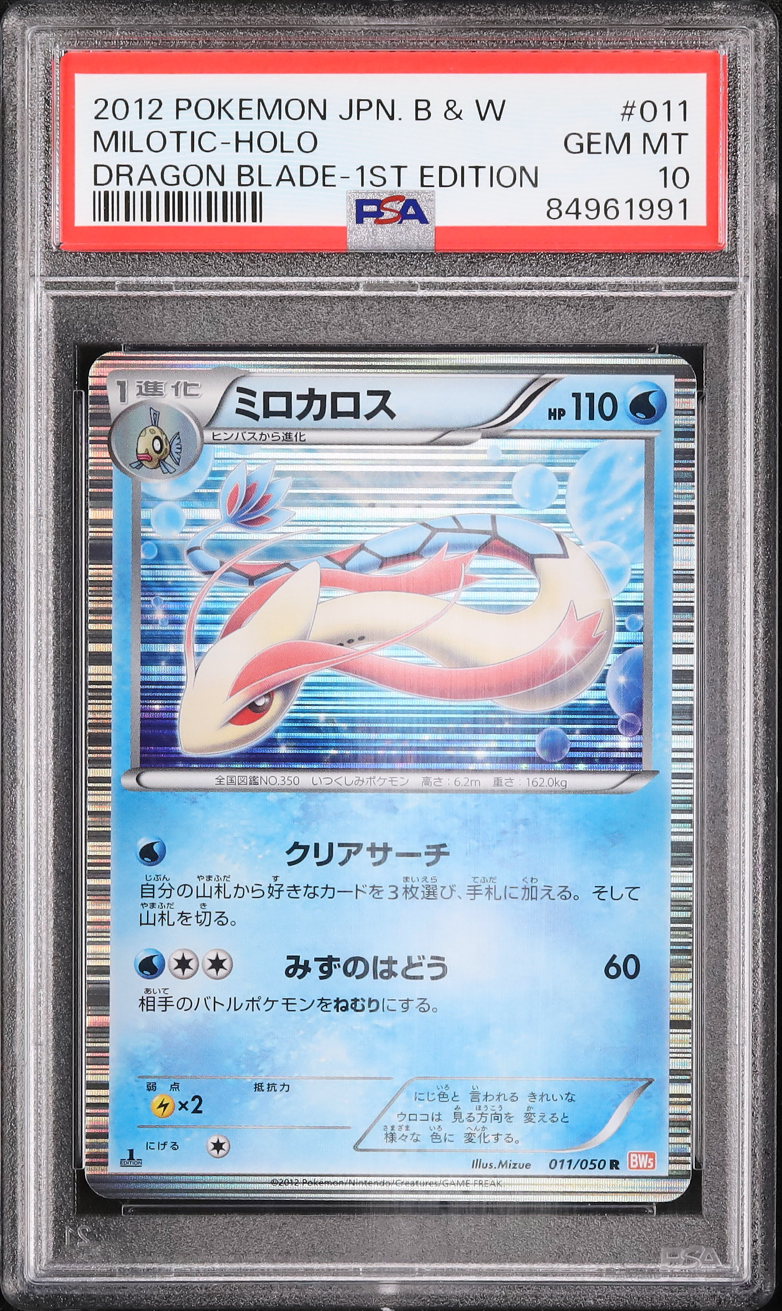 2012 Pokemon Japanese Milotic R 1st Edition Holo Dragon Blade BW5 #011 PSA 10