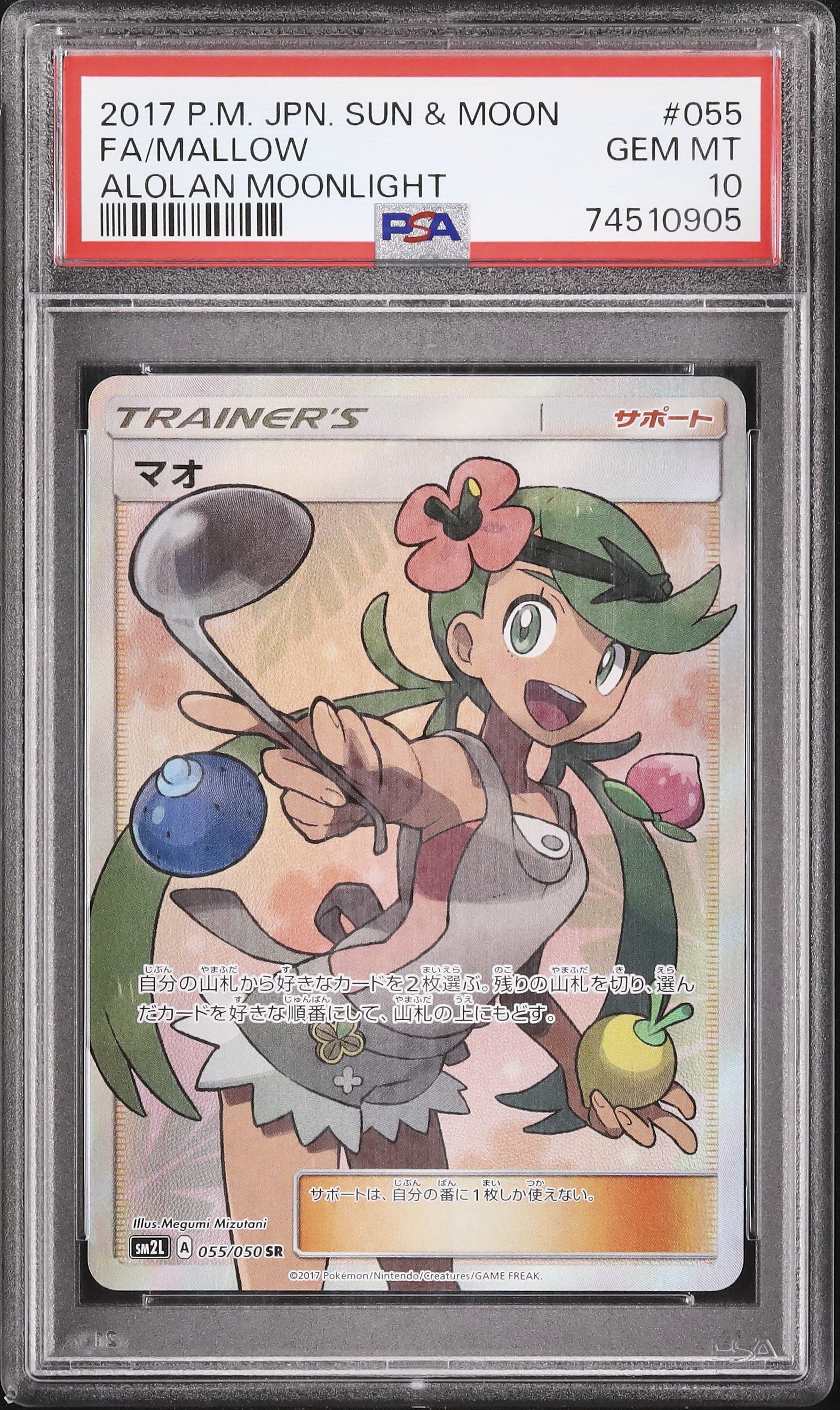 2017 Pokemon Japanese Mallow SR Full Art Alolan Moonlight SM2L #055 PSA 10