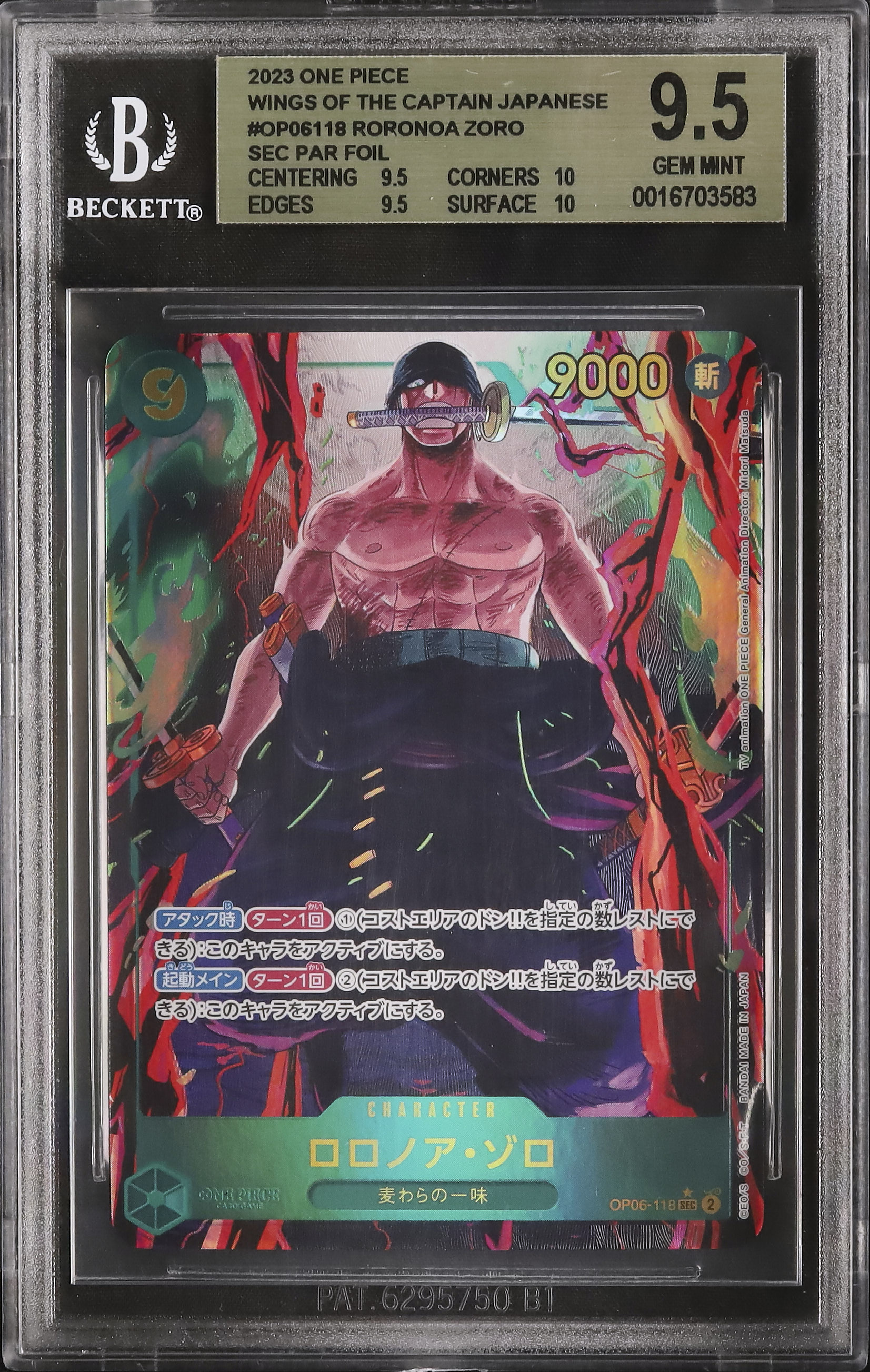 2023 One Piece Japanese Roronoa Zoro SEC Alternate Art Parallel Wings of the Captain #118 BGS 9.5