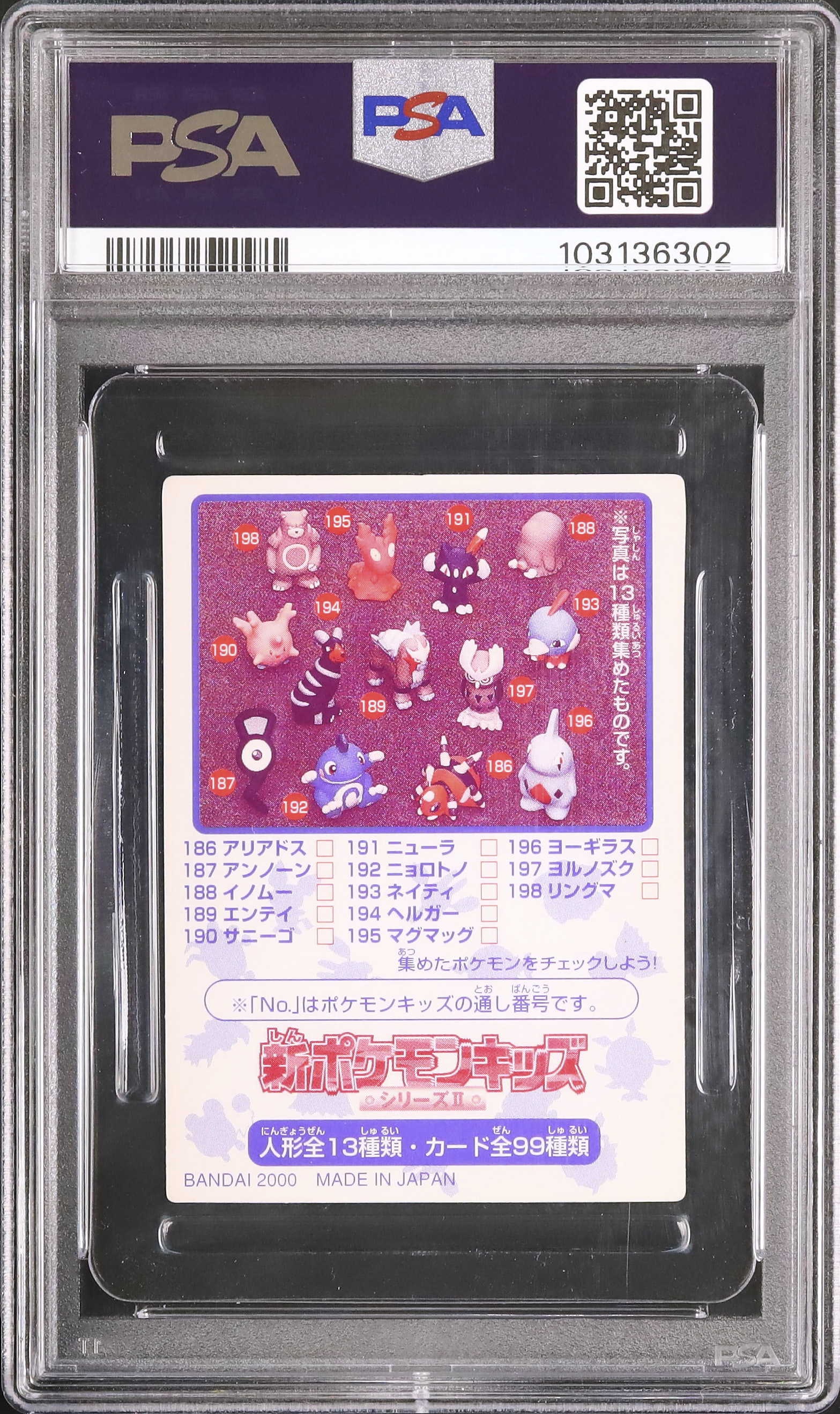 The "Pokémon Kids" is a Candy Toy sold by Bandai Co. Each set includes a Pokémon soft vinyl figure, a card, and Ramune candy, with this card being one of the included items.