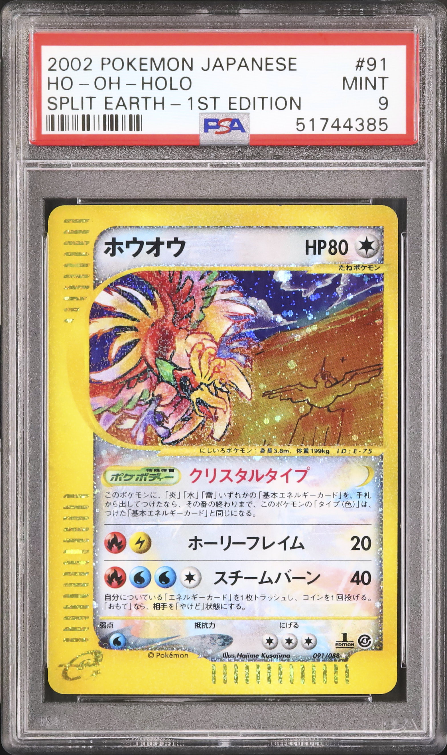 2002 Pokemon Japanese Ho-Oh Secret 1st Edition Crystal Type Holo Split Earth #091 PSA 9