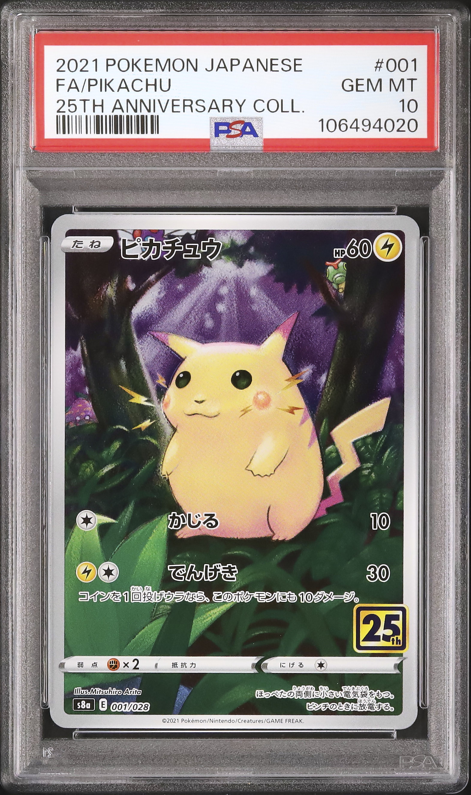 2021 Pokemon Japanese Pikachu Full Art 25th Anniversary Collection S8a #001 PSA 10
