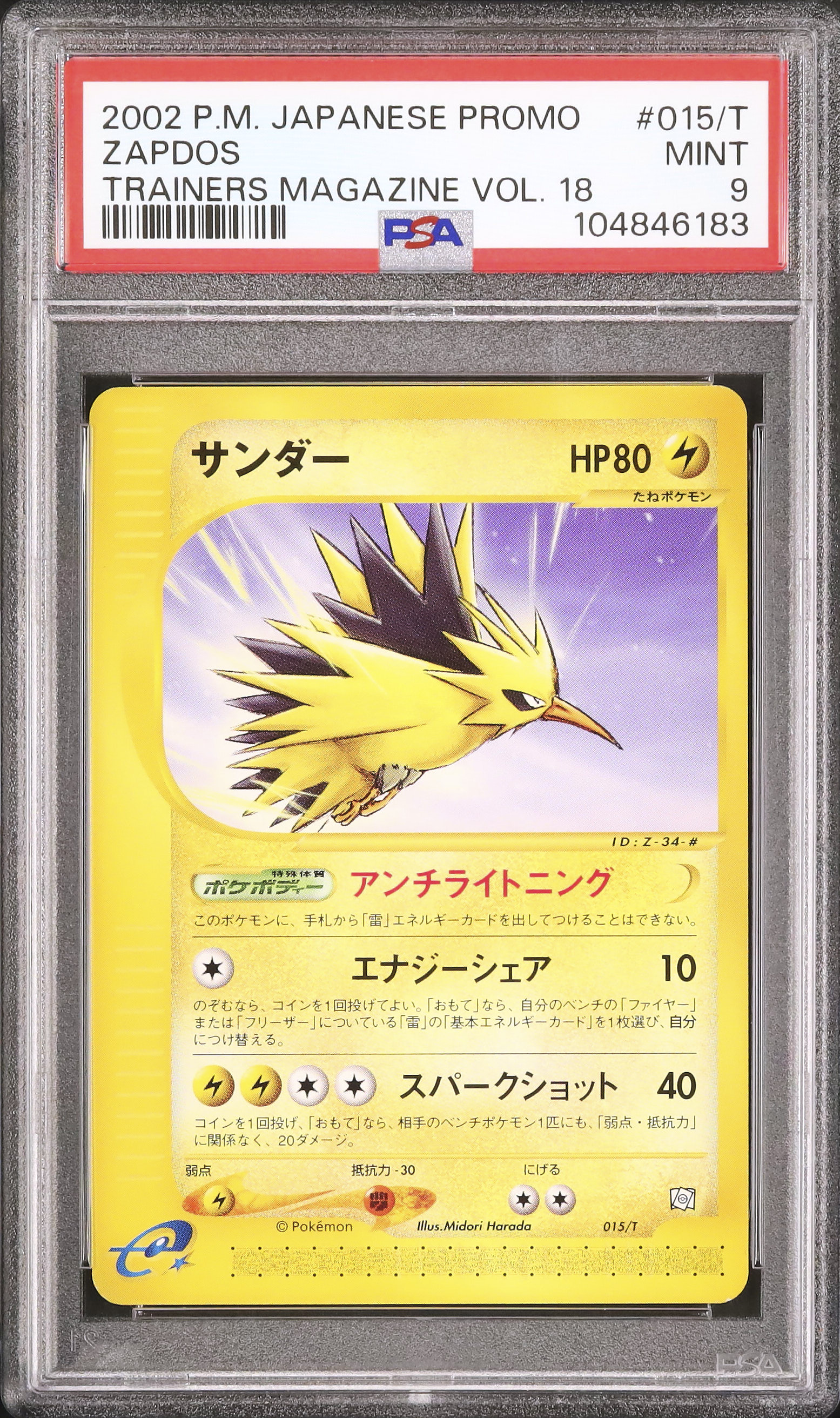 2002 Pokemon Japanese Zapdos Promo Trainers Magazine Vol. 18 #015/T PSA 9
