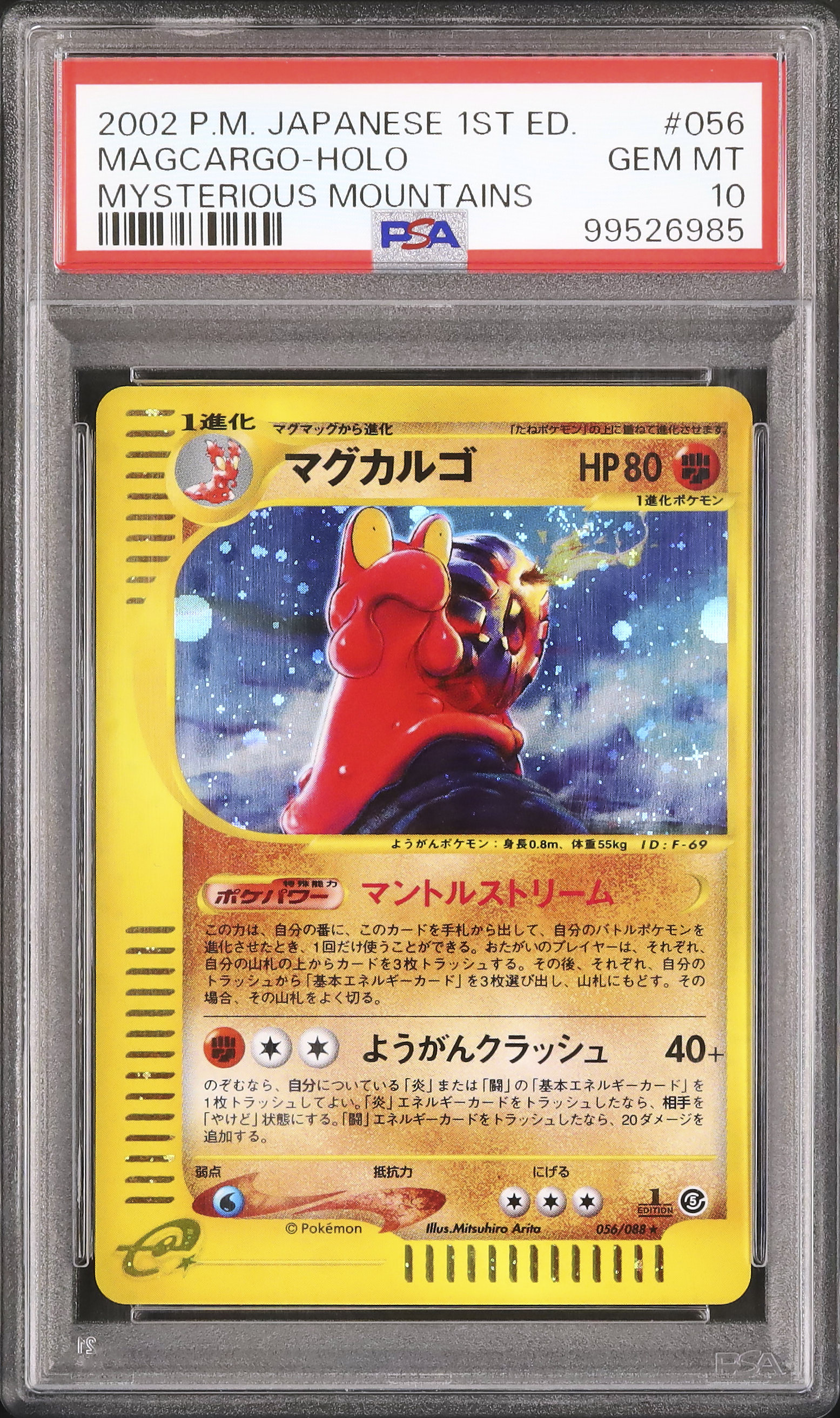 2002 Pokemon Japanese Magcargo Rare Holo 1st Edition Mysterious Mountains #056 PSA 10