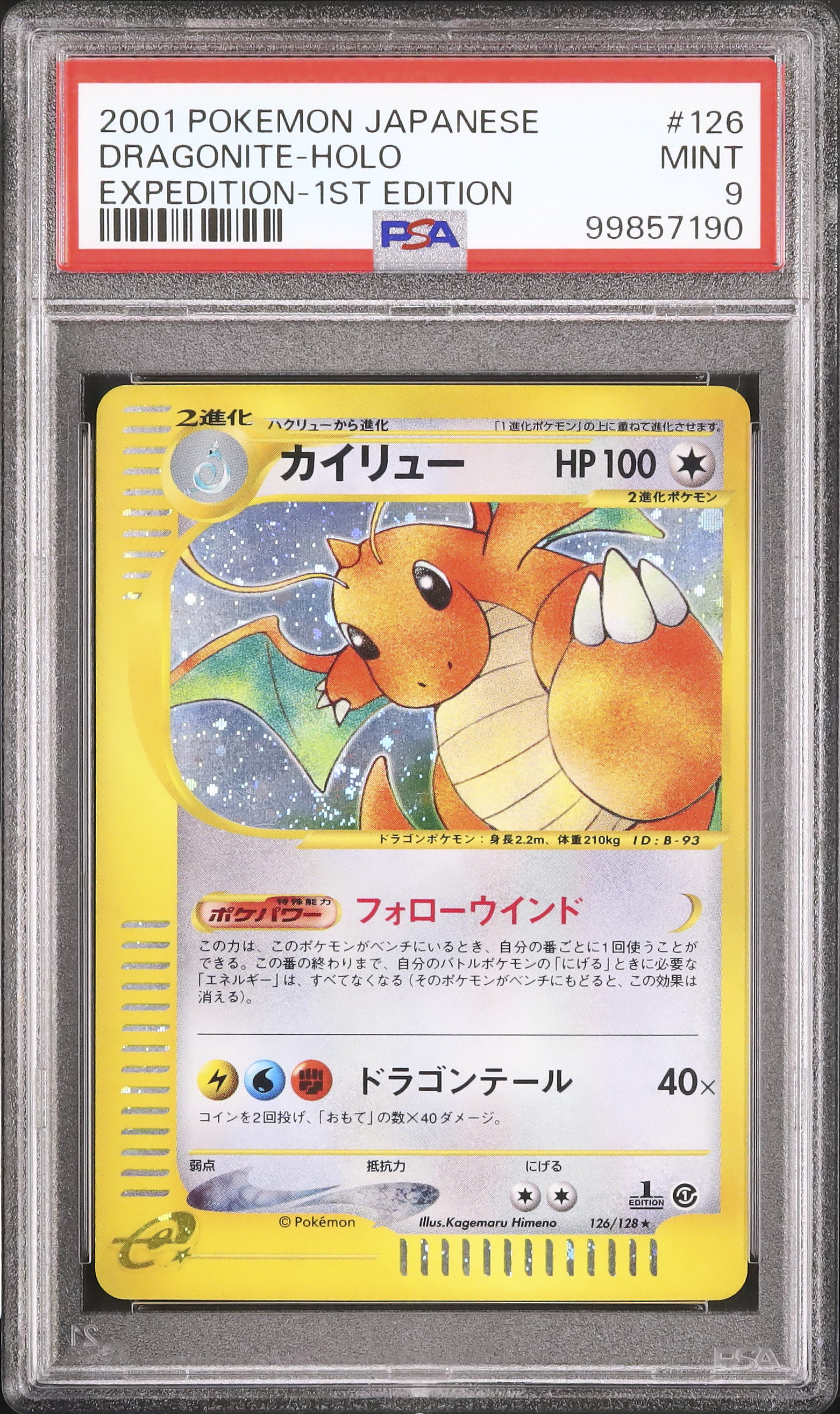 2001 Pokemon Japanese Dragonite Rare 1st Edition Holo e Basic #126 PSA 9
