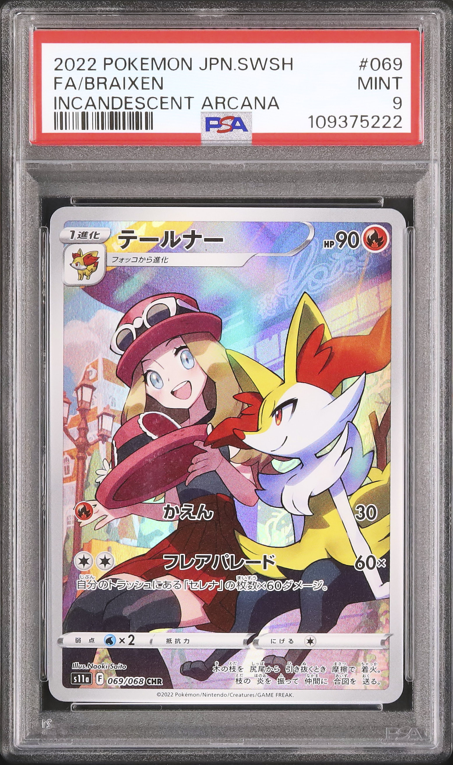 2022 Pokemon Japanese Braixen CHR Full Art Incandescent Arcana S11a #069 PSA 9