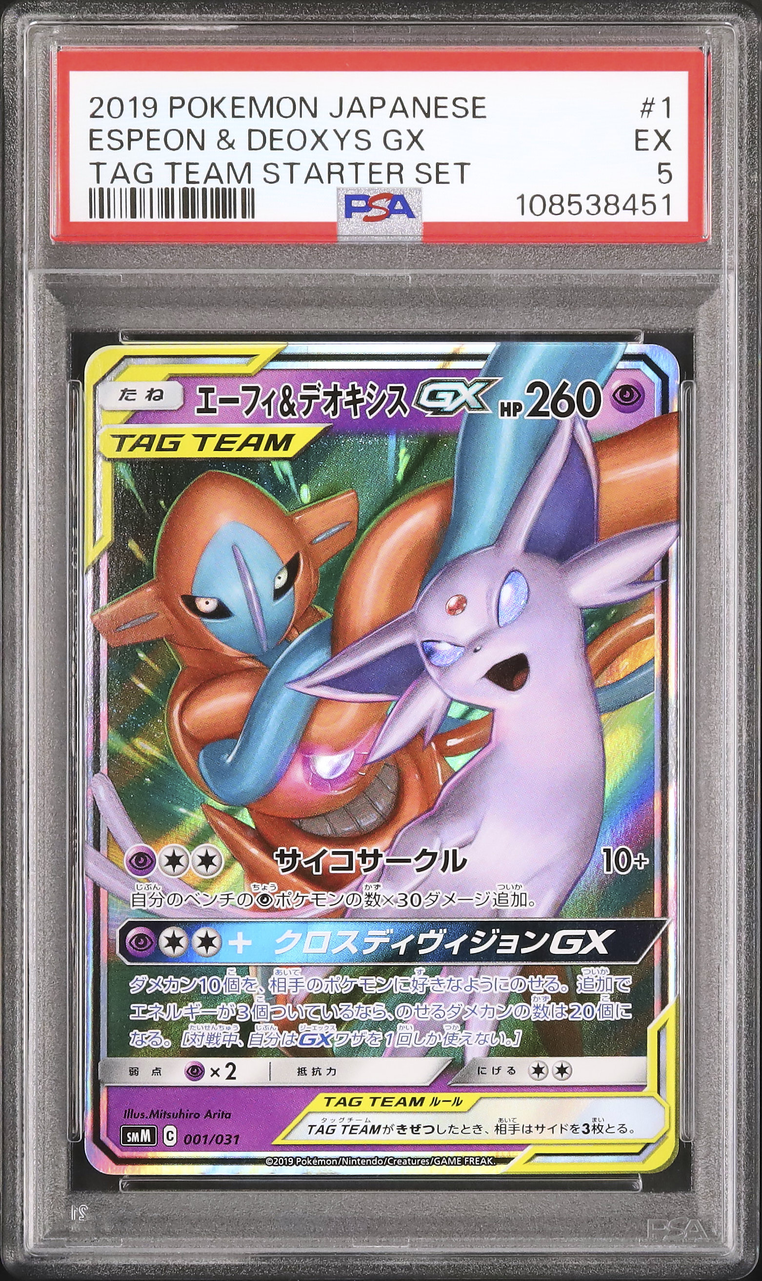 2019 Pokemon Japanese Espeon & Deoxys GX Tag Team Starter Set SMM #001 PSA 5