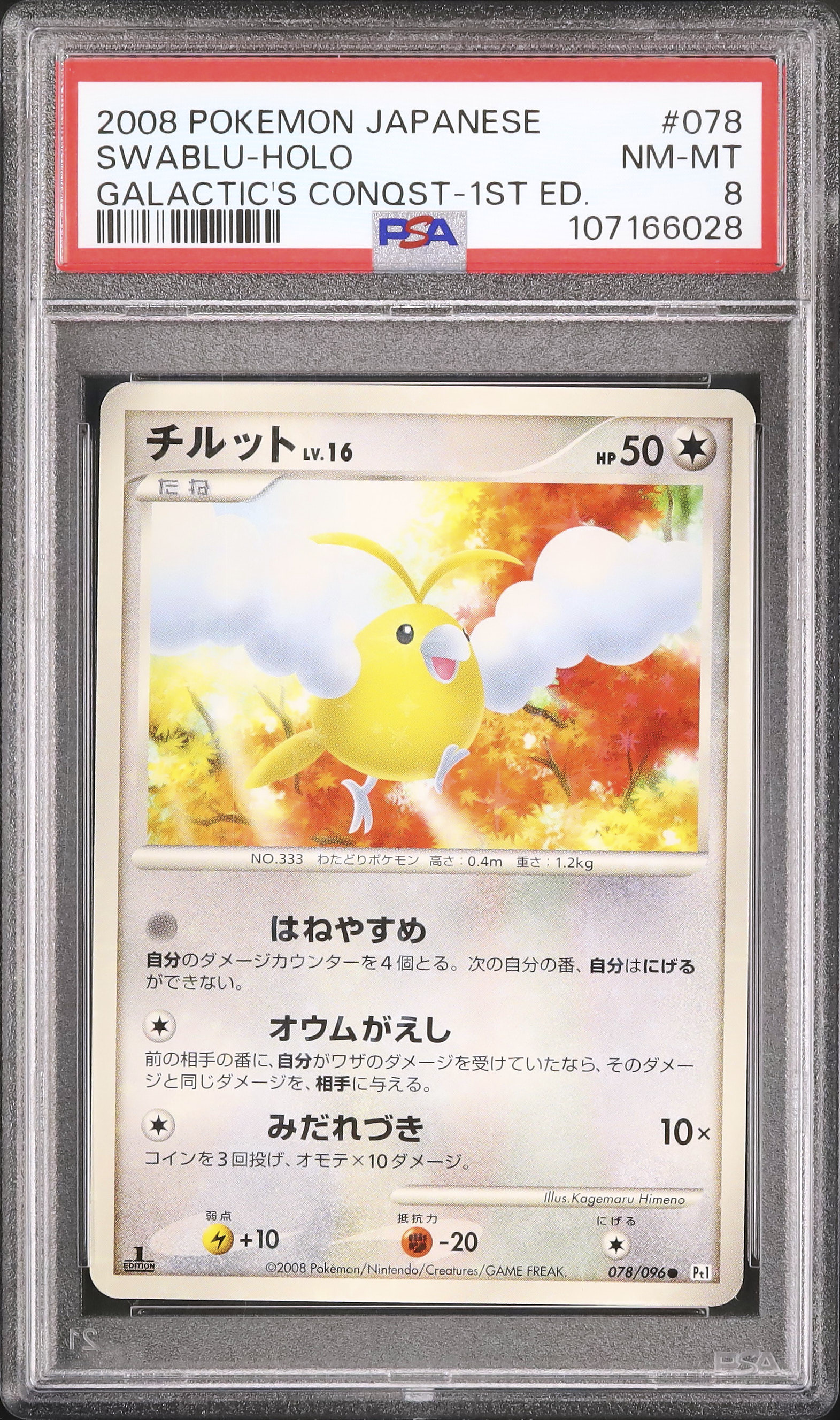 2008 Pokemon Japanese Swablu Common 1st Edition Shiny Holo Galactic's Conquest Pt1 #078 PSA 8