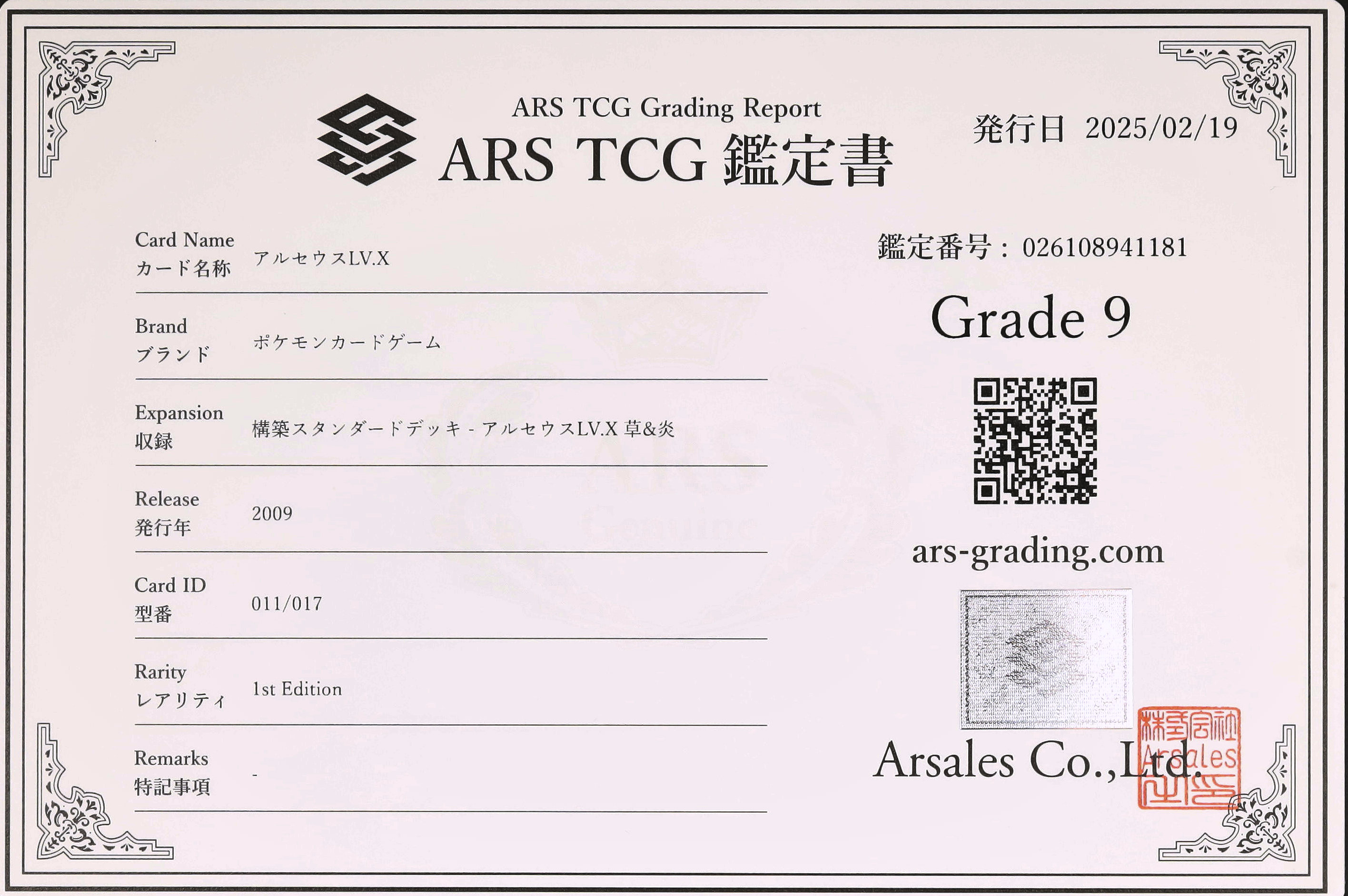 2009 Pokemon Japanese Arceus LV.X 1st Edition Holo With Certificate Arceus LV.X Deck: Grass & Fire Pt #011 ARS 9