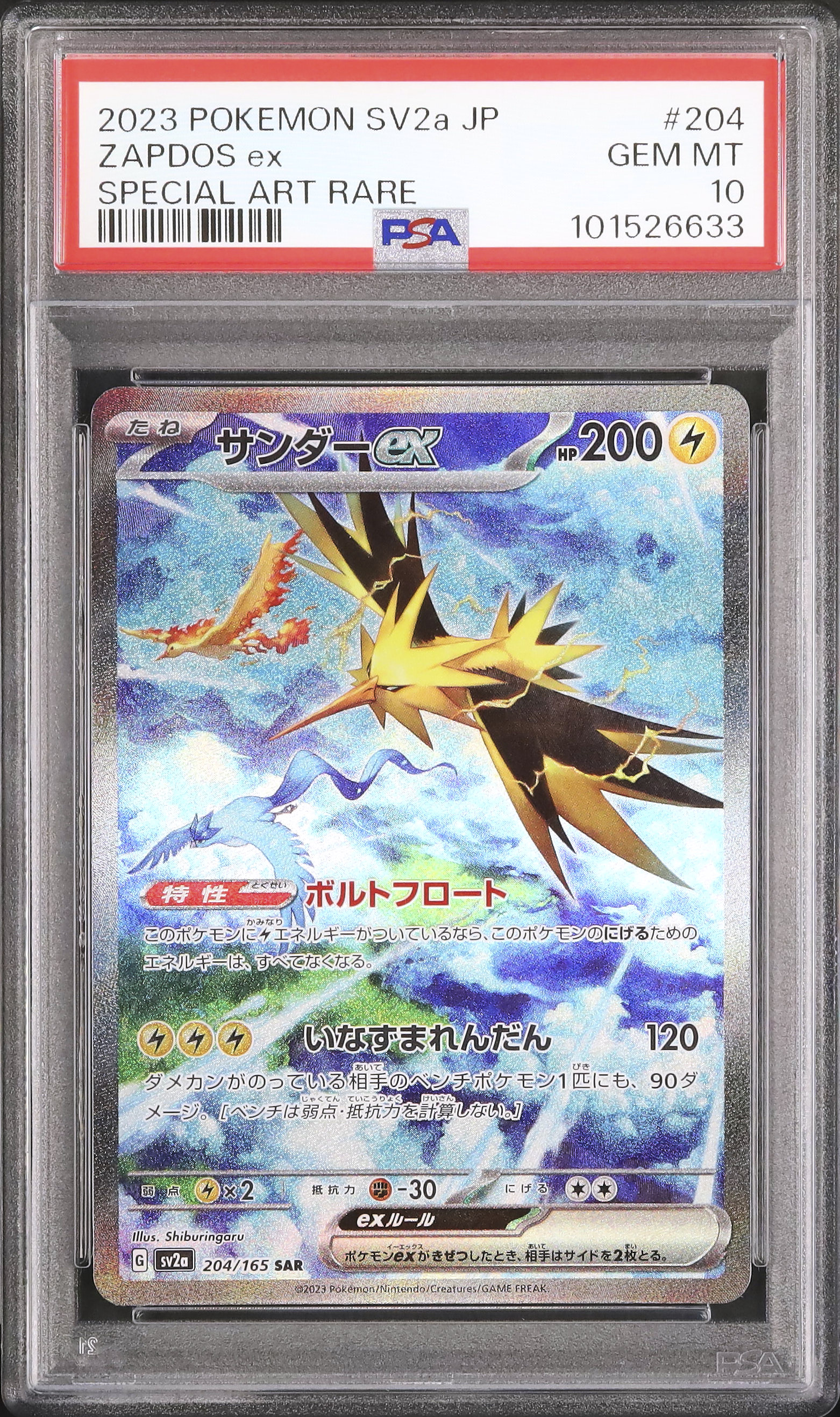 2023 Pokemon Japanese Zapdos ex SAR Pokemon Card 151 SV2a #204 PSA 10